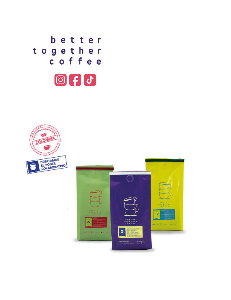 En Better Together Coffee, cada taza lleva el nombre de quienes, con sus manos, cultivan esperanza. Trabajamos de la mano con mujeres, jóvenes y firmantes del acuerdo de paz y víctimas del conflicto para ofrecerte cafés especiales con impacto real. Porque cuando nos unimos, el cambio es posible. Porque juntos, somos mejores.